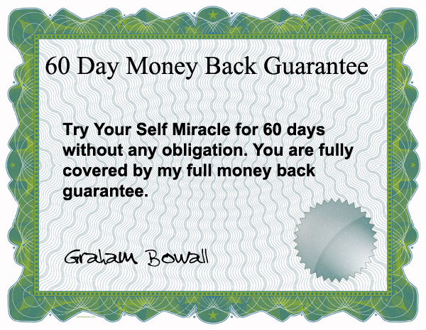P.P.S. You have absolutely zero risk! You can try out the awesome power of Your Self Miracle for 60 days absolutely risk free. This is a complete no brainer. I am taking all the risk here.